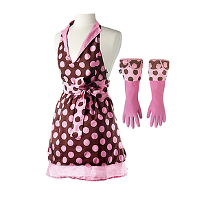 SET GUANTES Y DELANTAL CAFE ROSADO LUNARES CV7553