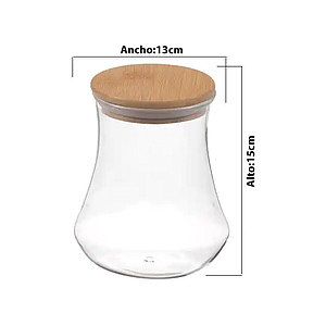 CONTENEDOR ABOMBADO DE VIDRIO TAPA MADERA 308041 / GZ1301-M (12 x 13cm / 450ml)