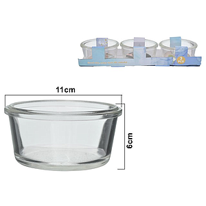 SET CONTENEDOR VIDRIO REDONDO PARA SALSAS 3PZS (11.5 x 11.5 x 5.80cm)