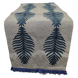 CAMINO DE MESA BORDADO HOJAS AZULES Y FLECO PDD-CC-2022-06 (36 x 183cm)