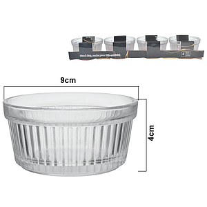 SET CONTENEDOR VIDRIO REDONDO LINEAS PARA SALSAS 4PZS 249294 / TW2002 (9 x 4cm)