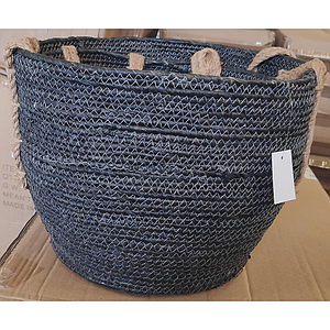 CESTA DE CUERDA DE ALGODÓN BICOLOR CON MANGOS GRANDE GHNB191GR (35 x 29cm)