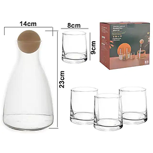 SET JARRA C/VASO VIDRIO 5PZS 460278 / SAN5393/JYSJ-305 (23 x 14cm /1.7lt - 8 x 9cm / 270ml)