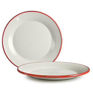 PLATO POSTRE HIERO ENLOZADO BLANCO ROJO 908118 (18cm)